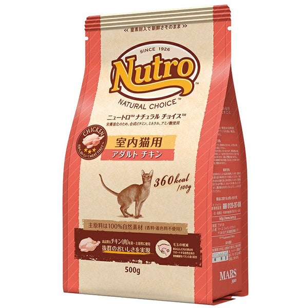 チキン(肉)、チキンミール、粗挽き米、エンドウタンパク、玄米、アルファルファミール、鶏脂* 、ポテトタンパク、ビートパルプ、亜麻仁、大豆油* 、オーツ麦繊維、タンパク加水分解物、ユッカ抽出物、ビタミン類(A、B1、B2、B6、B12、C、D3、E、コリン、ナイアシン、パントテン酸、ビオチン、葉酸)、ミネラル類(カリウム、クロライド、セレン、ナトリウム、マンガン、ヨウ素、亜鉛、鉄、銅)、アミノ酸類(タウリン、メチオニン)、酸化防止剤(クエン酸、ミックストコフェロール、ローズマリー抽出物)