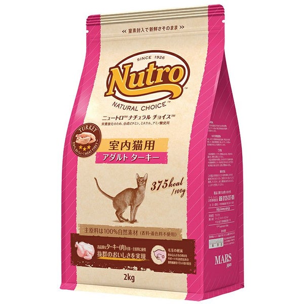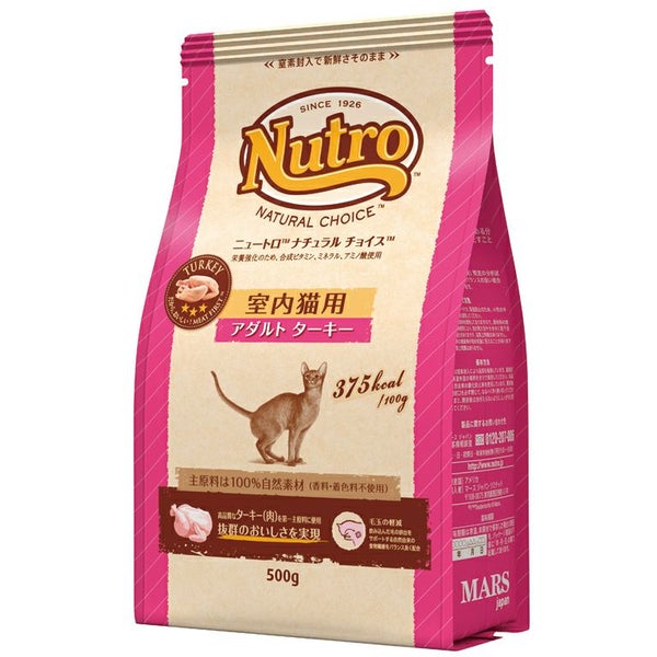 ターキー(肉)、チキンミール、粗挽き米、エンドウタンパク、玄米、鶏脂* 、オートミール、ポテトタンパク、ビートパルプ、アルファルファミール、大豆油* 、タンパク加水分解物、亜麻仁、ユッカ抽出物、ビタミン類(A、B1、B2、B6、B12、C、D3、E、コリン、ナイアシン、パントテン酸、ビオチン、葉酸)、ミネラル類(カリウム、クロライド、セレン、ナトリウム、マンガン、ヨウ素、亜鉛、鉄、銅)、アミノ酸類(タウリン、メチオニン)、酸化防止剤(クエン酸、ミックストコフェロール、ローズマリー抽出物)