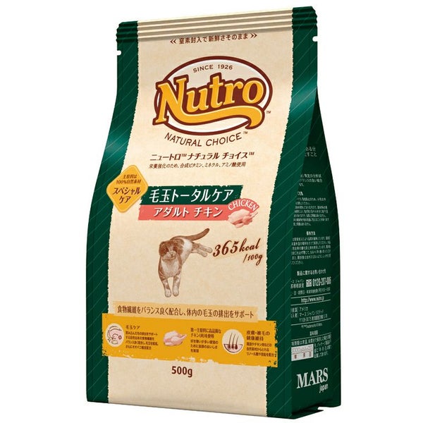 チキン(肉)、チキンミール、エンドウタンパク、玄米、乾燥ポテト、鶏脂*、オーツ麦繊維、アルファルファミール、ポテトタンパク、米糠、オートミール、大豆油*、タンパク加水分解物、オオバコ種皮、ユッカ抽出物、ビタミン類(A、B1、B2、B6、B12、C、D3、E、コリン、ナイアシン、パントテン酸、ビオチン、葉酸)、ミネラル類(カリウム、クロライド、セレン、ナトリウム、マンガン、ヨウ素、亜鉛、鉄、銅)、アミノ酸類(タウリン、メチオニン)、酸化防止剤(クエン酸、ミックストコフェロール、ローズマリー抽出物)