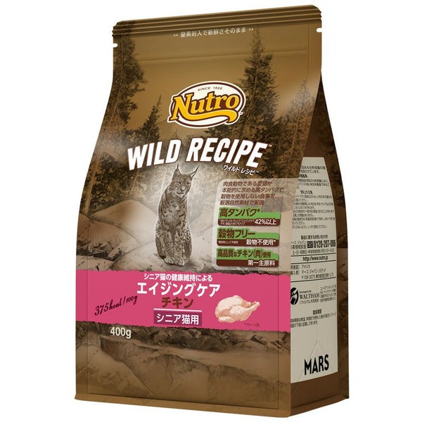 チキン(肉)、チキンミール、エンドウタンパク、エンドウマメ、鶏脂*1*2、ポテトタンパク、ビートパルプ、タピオカ、サーモンミール*3、フィッシュミール*3、アルファルファミール、レンズマメ、タンパク加水分解物、亜麻仁*3、ユッカ抽出物、ビタミン類(A、B1、B2、B6、B12、C、D3、E、コリン、ナイアシン、パントテン酸、ビオチン、葉酸)、ミネラル類(カリウム、カルシウム、クロライド、セレン、ナトリウム、マンガン、ヨウ素、亜鉛、鉄、銅)、アミノ酸類(タウリン、メチオニン)、酸化防止剤(ミックストコフェロール、ローズマリー抽出物、クエン酸)*1 ミックストコフェロールで保存 *2 オメガ6脂肪酸源、*3 オメガ3脂肪酸源