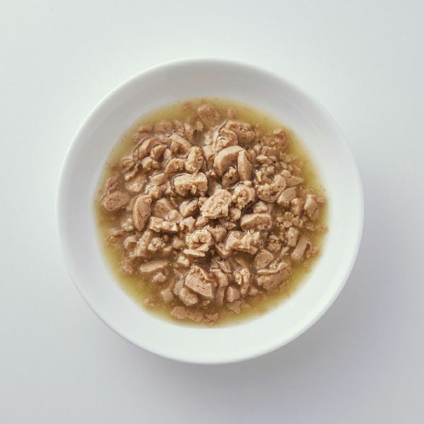 チキン、鶏レバー、小麦、調味料(アミノ酸等)、ビタミン類(B1、B2、B6、B12、D3、E、K、コリン、ナイアシン、パントテン酸、ビオチン、葉酸)、ミネラル類(Ca、Cl、Cu、Fe、I、K、Mg、Mn、Na、P、Se、Zn)、タウリン、増粘多糖類