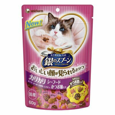 猫ちゃんが大好きなまぐろ、かつお、白身魚、しらすのカリッと贅沢なおいしさにかつお節をトッピング