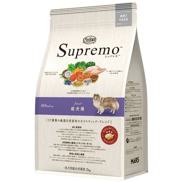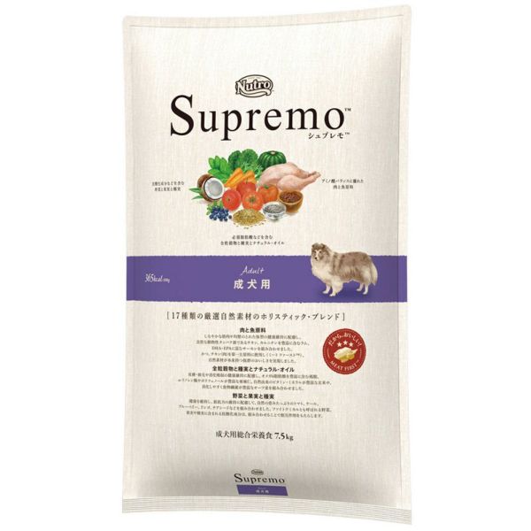チキン(肉)、チキンミール、モロコシ*2、大麦*3、オーツ麦*3、玄米*4、鶏脂*1*5、タンパク加水分解物、ラムミール*6、サーモンミール*7、ビートパルプ、粗挽き米、亜麻仁*2*8、チアシード*2*3*8、ココナッツ*9、乾燥卵、トマト*2、ケール*2、パンプキン*2、ホウレン草*2*10、ブルーベリー*2、リンゴ*2、ニンジン*2、ビタミン類(A、B1、B2、B6、B12、C、D3、E、コリン、ナイアシン、パントテン酸、ビオチン、葉酸)、ミネラル類(カリウム、クロライド、セレン、ナトリウム、マンガン、ヨウ素、亜鉛、鉄、銅)、アミノ酸類(メチオニン)、酸化防止剤(ミックストコフェロール、ローズマリー抽出物、クエン酸)