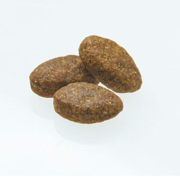 タンパク質:30.0%以上、脂質:16.0%以上、粗繊維:4.0%以下、灰分:11.0%以下、水分:10.0%以下、【その他含有成分】オメガ3脂肪酸:0.5%以上、オメガ6脂肪酸:2.8%以上、亜鉛:250mg/kg以上、ビタミンE:80IU/kg以上、カルシウム:1.5%以上、リン:1.0%以上