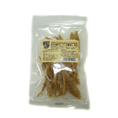 国産の鶏ささみを使用し、硬めに仕上げました。 与え易い細切りタイプ。 ■原材料:鶏ささみ ■成分:粗たんぱく質60.0%以上、粗脂肪2.3%以下、粗繊維0.3%以下、粗灰分8.0%以下、水分14.0%以下 ■カロリー:320kcal/100g ■内容量:60g
