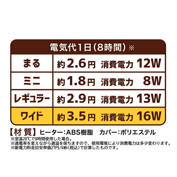 ■仕様:電源:交流100V 50-60Hz コード長さ:約1.8m消費電力:約12W 発熱体:コードヒーター 温度:(強)約40℃、(弱)約35℃ 安全装置:温度ヒューズ