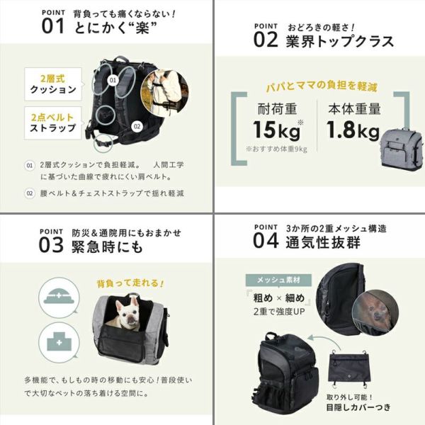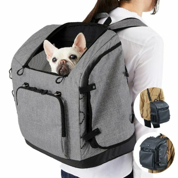 背負う・肩掛け・前抱きの3WAY仕様の、猫・小型犬用の移動用キャリーバック。