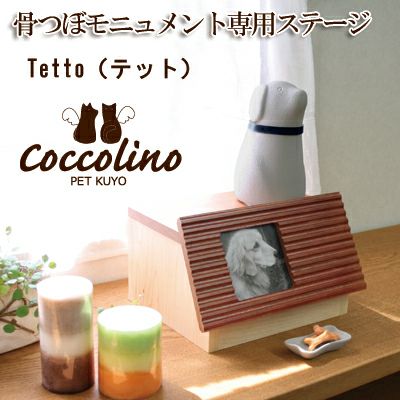 ナチュラルな無垢材の木の質感に、やさしいぬくもりを感じる手作りのステージ。“あの子のホーム”を、あたたかな雰囲気で表現しました。屋根の窓にお気に入りの写真を飾ることができます。屋根を外すと現れる収納スペースには、リードやお気に入りのおもちゃを納めることができます。