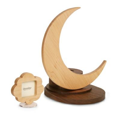 美しい弧を描く月が印象的な、無垢材のステージです。ひとつひとつ職人による手作りで、木のぬくもりが骨つぼモニュメントを包み込みます。可愛らしい雲のフォトフレームと協演して、まるでおとぎの国のワンシーンのよう。